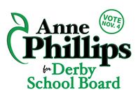Describe your involvement with organizations and events, particularly highlighting how Anne Phillips has contributed to community involvement through her role on the Derby School Board. Her commitment to education advocacy is evident, especially when considering her background in military service.